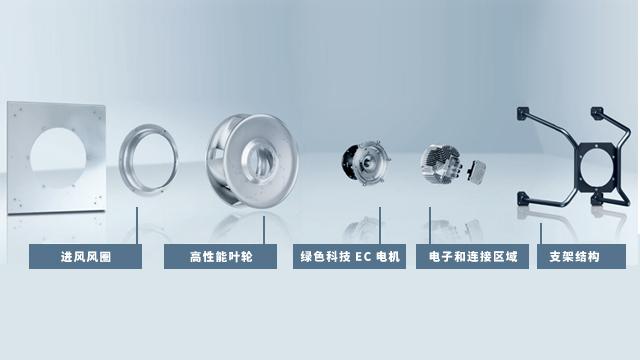 3.綠色科技EC電機:極其緊湊,葉輪直接安裝在電機轉子上;效率高,銅鐵損耗低,同步運行,無轉差損耗,采用永磁磁體,轉子內無磁滯損耗;運行非常經濟實惠,優(yōu)化換向,可實現(xiàn)高達1:10的部分負荷運行,同時仍保持高效率;噪聲低,換向和定子設計使得勵磁系統(tǒng)的磁化噪聲非常低,高循環(huán)頻率,幾乎聽不到任何噪聲;使用壽命長,免維護軸承,無刷換向;運行可靠,絕緣軸承系統(tǒng),避免產生軸承電流